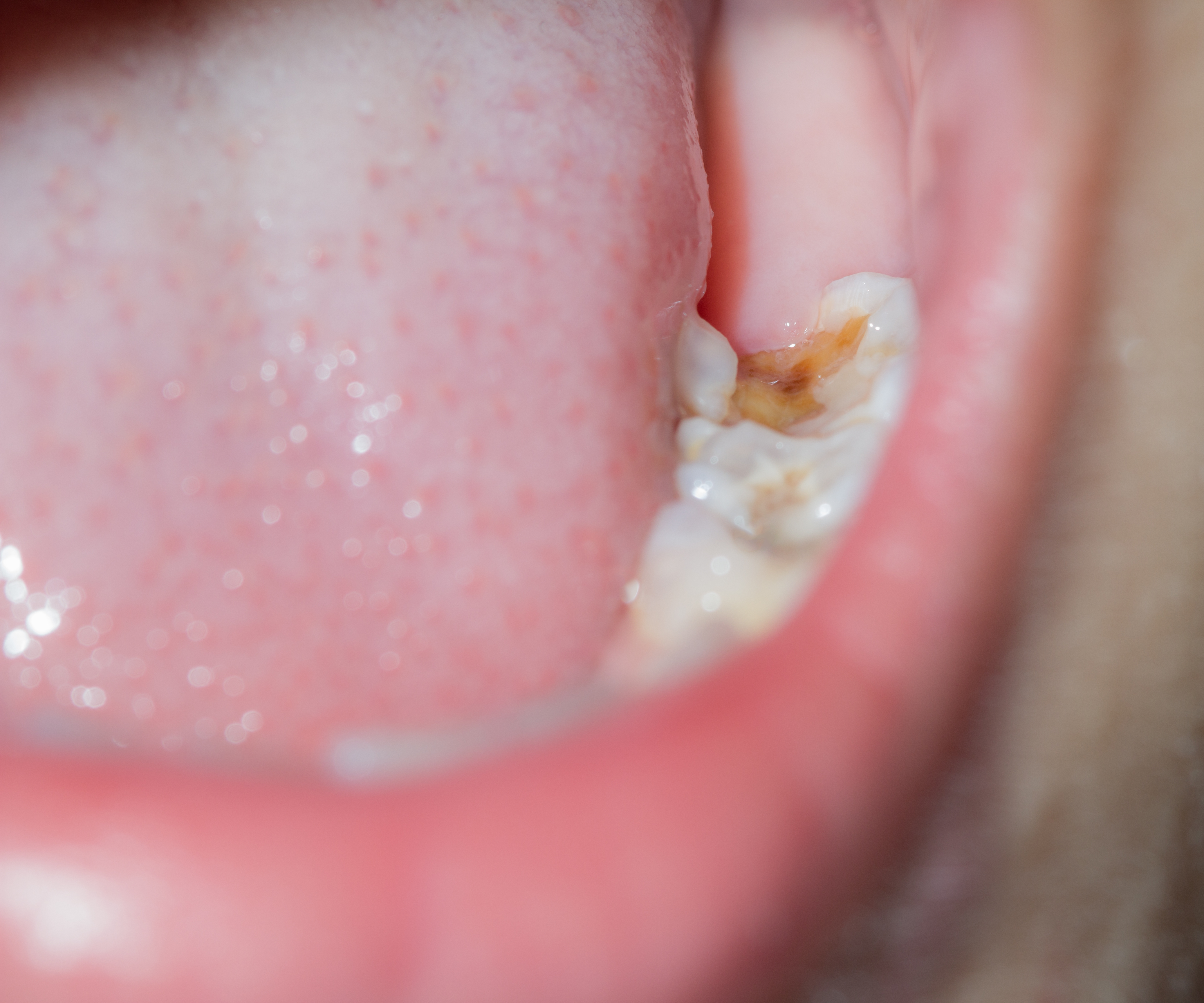 - Svære tilfælde med omfattende destruktion, kan være svære at behandle og stabilisere. Der kan gøres forsøg med fyldning eller omsluttende krone i stål eller plast. Hvis langtidsprognosen vurderes dårlig, anbefaler vi typisk at MIH-tanden fjernes. Hvis det gøres på rette tidspunkt (typisk 9-10-års alderen), vil 12-års tanden i de fleste tilfælde komme fint frem og lukke mellemrummet helt eller delvist.