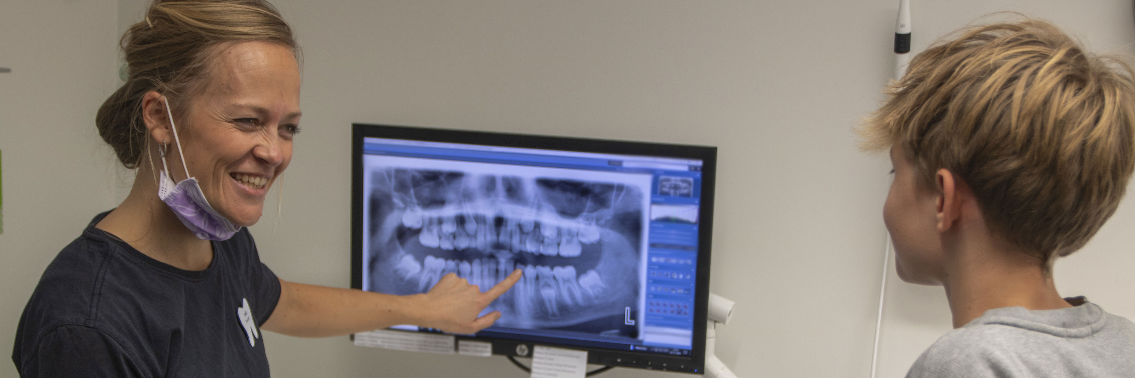 Røntgen gør det muligt at opdage ting, der ikke kan ses med det blotte øje - f.eks. begyndende huller, manglende tandanlæg eller tænder, der frembryder skævt.