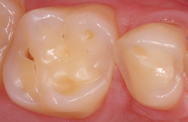 Syreskader viser sig typisk som gennemsigtige og ujævne kanter på fortænderne. Måske oplever du, at små stykker tand knækker af. På kindtænderne ses typisk små gullige fordybninger.